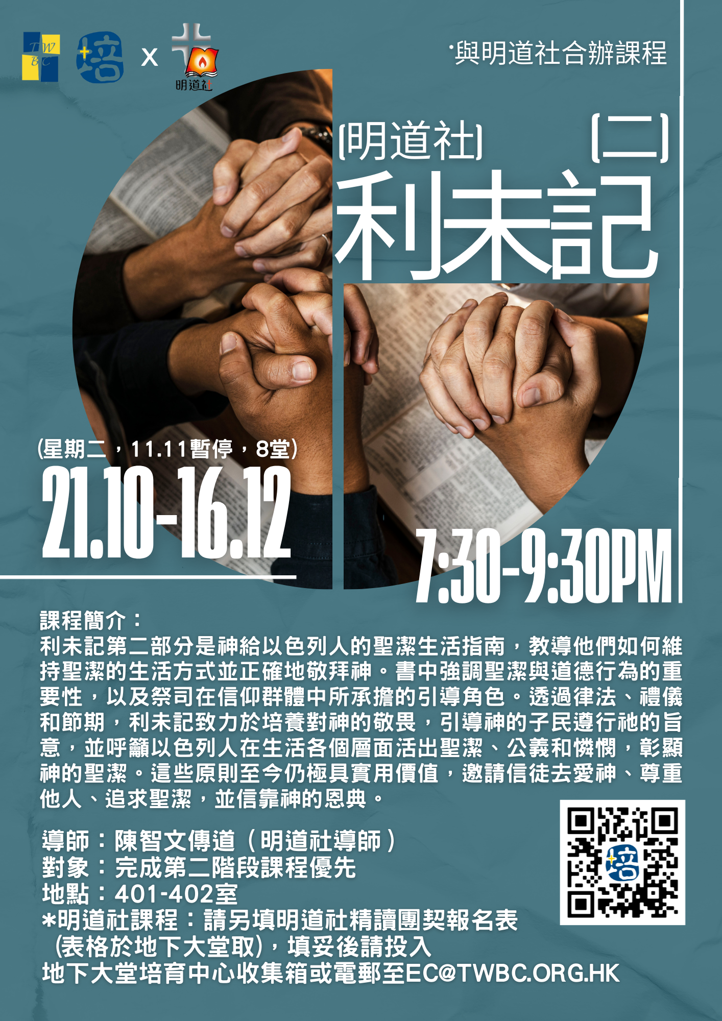 *明道社課程:請另填明道社精讀團契報名表 (表格於地下大堂取) 或