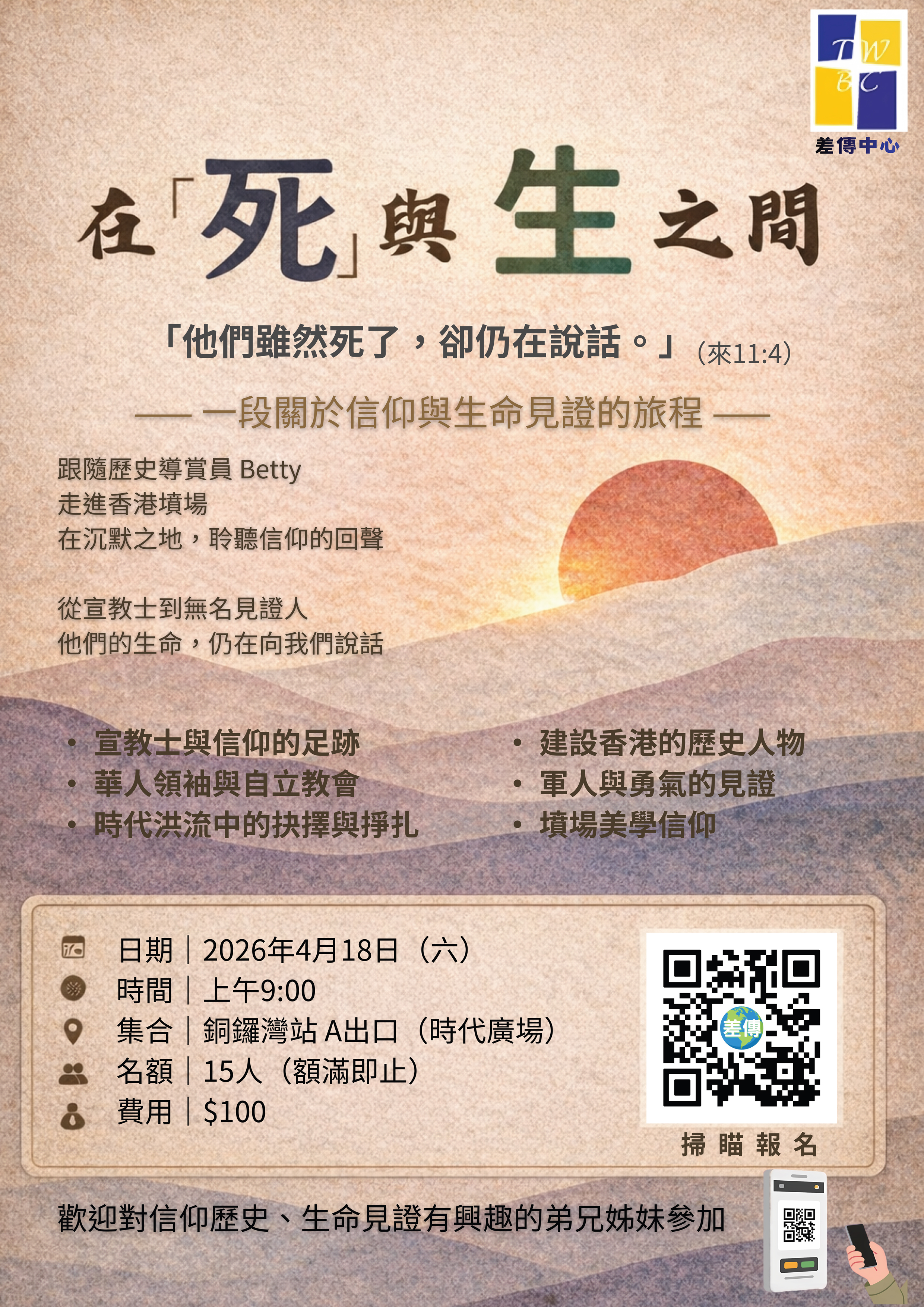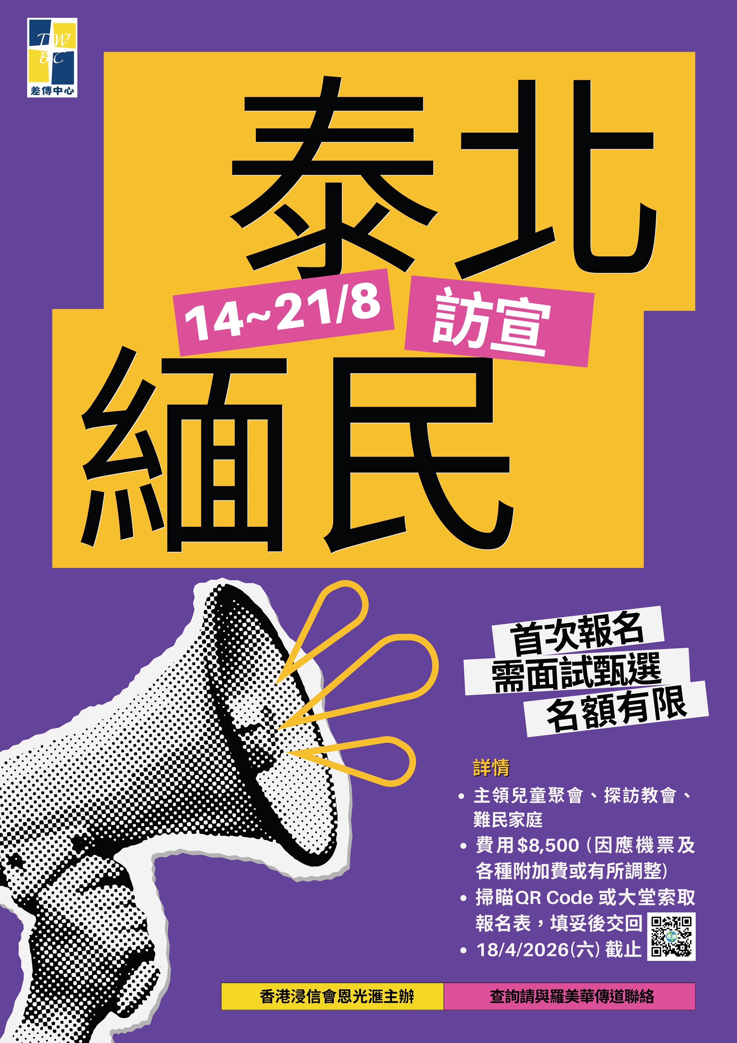 掃瞄QR Code報名,查詢請與羅美華傳道聯絡。(詳參海報)